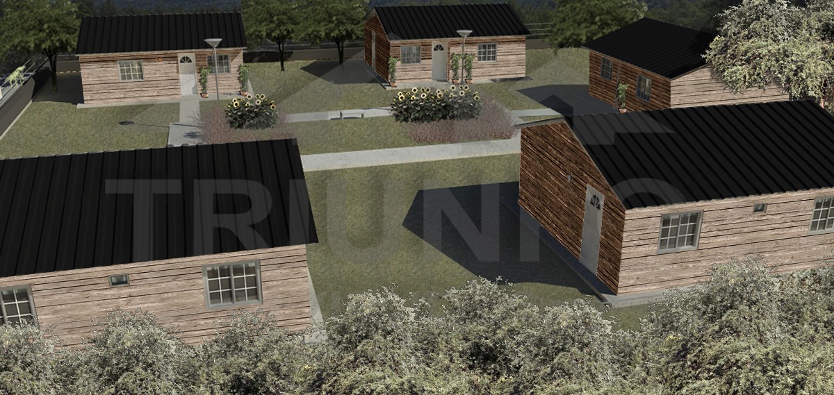 Para aquellas personas, que están interesadas en el negocio del turismo, el mismo combina una bella madera rustica estilo cabaña exterior. Las cabañas están equipadas en su interior con paredes de Durlock, y su exterior con medios troncos de pino. Todo el techos son de chapa trapezoidal y en el interior son de machimbre de pino de primera calidad. Las puerta chapa doble inyectadas con poliuretano expandido. Las ventanas son de aluminio pintadas en horno color blando con vidrios repartidos. Opcional Rejas